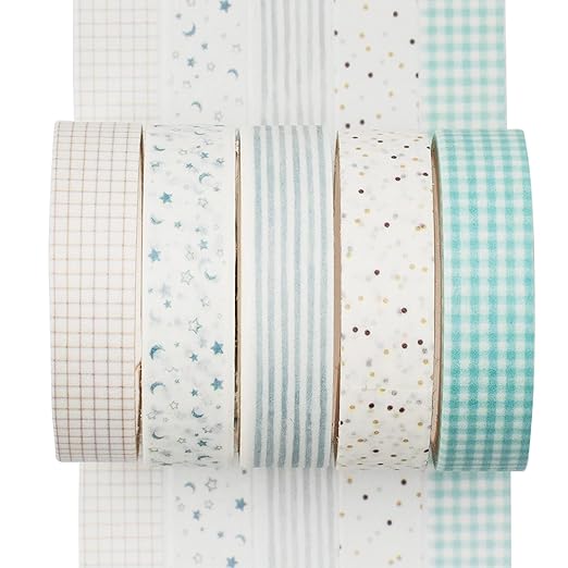 The YUBX 5 Rolls Washi Tape Set in Cyan Dew offers a versatile selection of skinny decorative tapes ideal for arts, DIY crafts, journals, planners, scrapbooking, and gift wrapping. Each roll features a creative design that combines subtle color tones with precise application for detailed customization. This set provides experts and hobbyists alike with durable, easy-to-tear tapes that enhance projects with a professional finish while maintaining compatibility with various surfaces and materials.